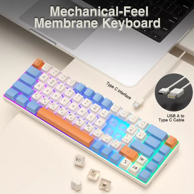 Take your setup to the next level with this 60% compact wired RGB keyboard. Designed with 68 keys, it keeps the essential functions you need while saving desk space for your mouse and other accessories. Its sleek and portable size makes it perfect for gaming, work, and travel, while still keeping the arrow keys for everyday convenience.