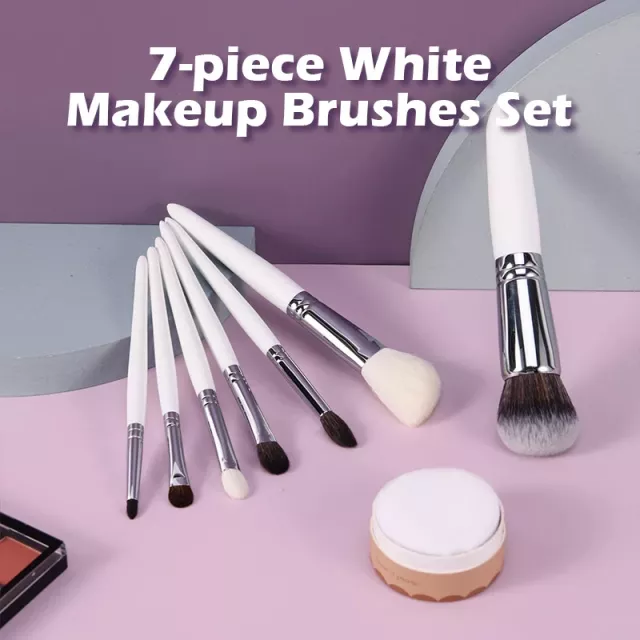 7PCS White Makeup Brush Set for Foundation, Concealer & Eye Shadow