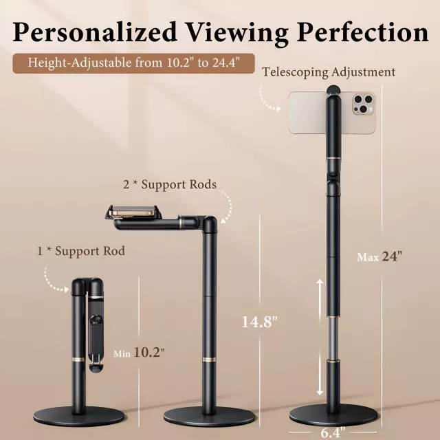 This phone holder is not just functional—it’s designed with versatility in mind. The adjustable height and angles allow you to find the most comfortable position for your needs, while the 360° rotation ensures you never miss the right view. The strong, stable base keeps your device secure, so you can stay focused without worrying about slips or falls. It’s a true “lazy bracket” stand, perfect for hassle-free use anywhere around your home or office.