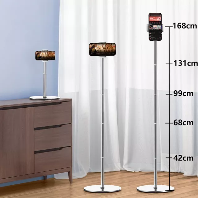 This tablet and phone holder combines durability, flexibility, and ease of use in one stylish design. Made from strong metal for long-lasting stability, it holds devices securely from 4.7 inches up to 12.9 inches. The stand reaches up to 66.1 inches in height, making it perfect for use while sitting, standing, or even exercising.
