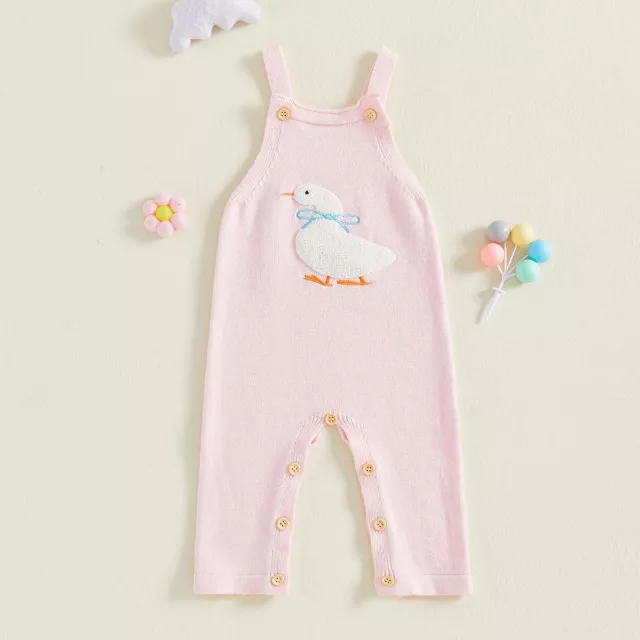 Dress your baby girl in comfort and charm with this knitted sleeveless romper, designed to keep her cozy and stylish all season long. Made from a soft blend of viscose, polyester, and polyamide, this jumpsuit feels gentle on delicate skin while providing just the right amount of warmth. The sweet duck embroidery on the front adds a playful touch that makes this outfit a must-have for fall days and family outings.