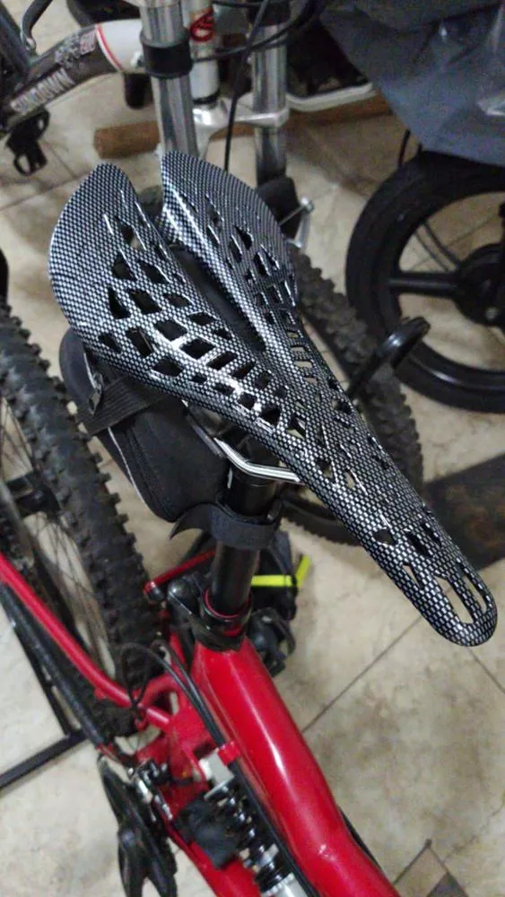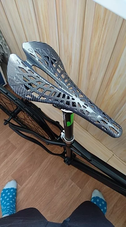 First, let me say that I have never found a really comfortable bike seat, except the super fat ones on exer-cycles and the chair-like one on my wife's recumbent bike. I'm an old guy with a mountain bike and city bike (not a road bike). I finally tossed my city bike seat into the box of other failures and decided to try one of this ilk. Real carbon fiber laminate seats of this type cost about $150. They are molded plastic. It seems that they believe that "carbon fiber" is a color, or that they can throw a few fibers into the molding press and use that as an excuse for the name. For sure, never buy one where the carbon laminate appearance is a grid painted onto the plastic. This one seems a reasonable step up from the really cheap junk. It's a little stiffer than I expected from the reviews, so my sit bones want padded bike shorts. Maybe it will fit better with time. Given the stress it gets, I hope that they put some chopped fiber into the plastic (not carbon fiber) to strengthen it. This is standard for injection molded parts. We'll see how it holds up...