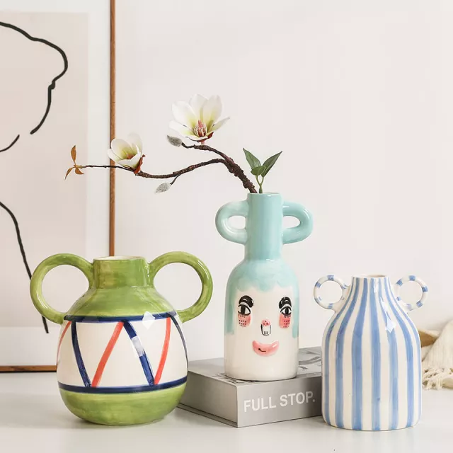 What makes this vase special is its combination of functionality and design. It’s not just a container for flowers – it’s a statement piece that elevates your interior style. With its bold geometric stripes and unique handle detail, it draws attention while blending seamlessly with modern, Scandinavian, or eclectic décor themes. Place it on a coffee table, mantel, or desk and watch how it transforms the atmosphere of your space.