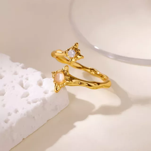 This ring blends quality materials with thoughtful design. Its stainless steel base ensures durability and resistance to tarnish, while the 18k gold plating offers a luxurious finish. The adjustable band allows for a comfortable fit on most finger sizes, and the zircon flowers add a radiant sparkle without overwhelming your look. Measuring approximately 0.8 in across the design, it makes a bold yet elegant statement.