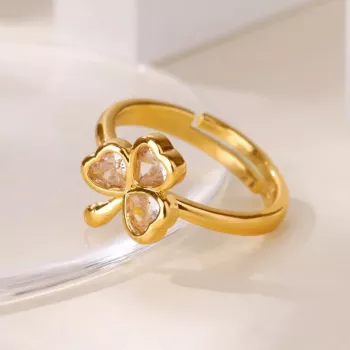 Gold Heart Zircon Adjustable Ring – Crystal Stainless Steel Jewelry