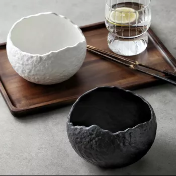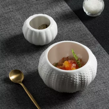 Elegant White Ceramic Dinner Plate & Creative Dessert Bowl Set
