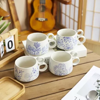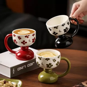 Retro Ceramic Flower Mug – Large Coffee & Tea Cup Gift