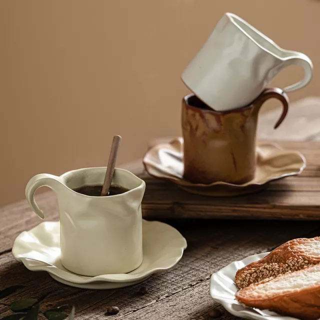 Made from high-quality ceramic, these cups and saucers are both durable and reusable, giving you a long-lasting set for countless coffee breaks. Each cup is paired with a matching saucer and spoon, making it perfect for a well-rounded serving experience. Please note that due to the high-temperature firing process, small black spots or convex marks may appear—this is a natural part of ceramic craftsmanship and adds to its authentic charm.