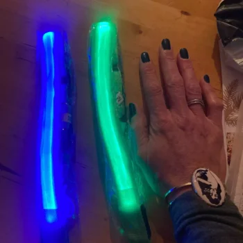 Walking at 3 a.m. has become safer with this brightly lit collar, making us visible to traffic.