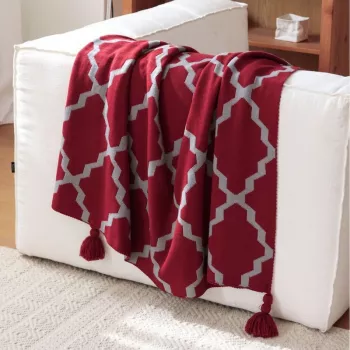 Red Knit Geometric Blanket Throw for Sofa or Bed