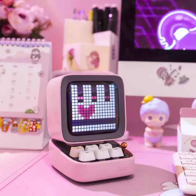 Turn every moment into a fun experience with this stylish retro-inspired Bluetooth speaker. Its compact design and charming pink finish make it more than just a speaker—it’s a conversation starter. Packed with smart features, vibrant pixel art display, and powerful sound, this portable device is perfect for music lovers, gamers, and anyone who enjoys a touch of nostalgia.