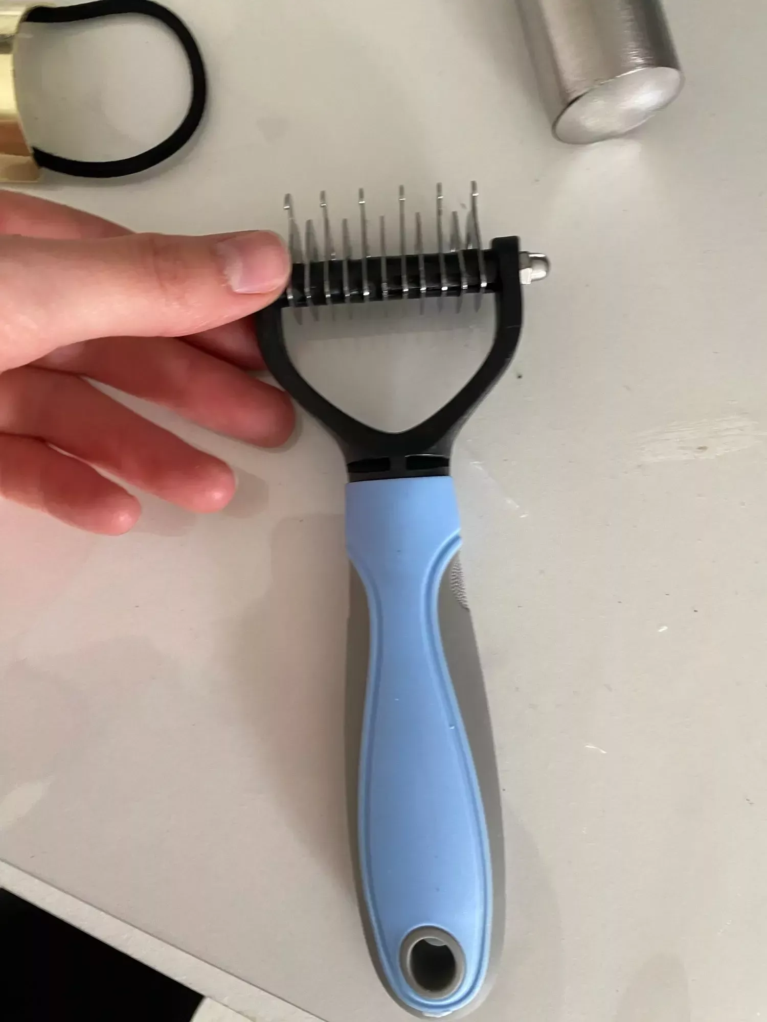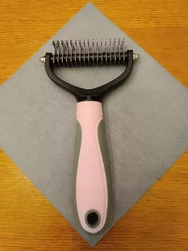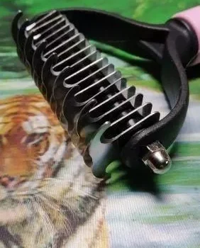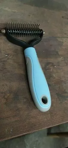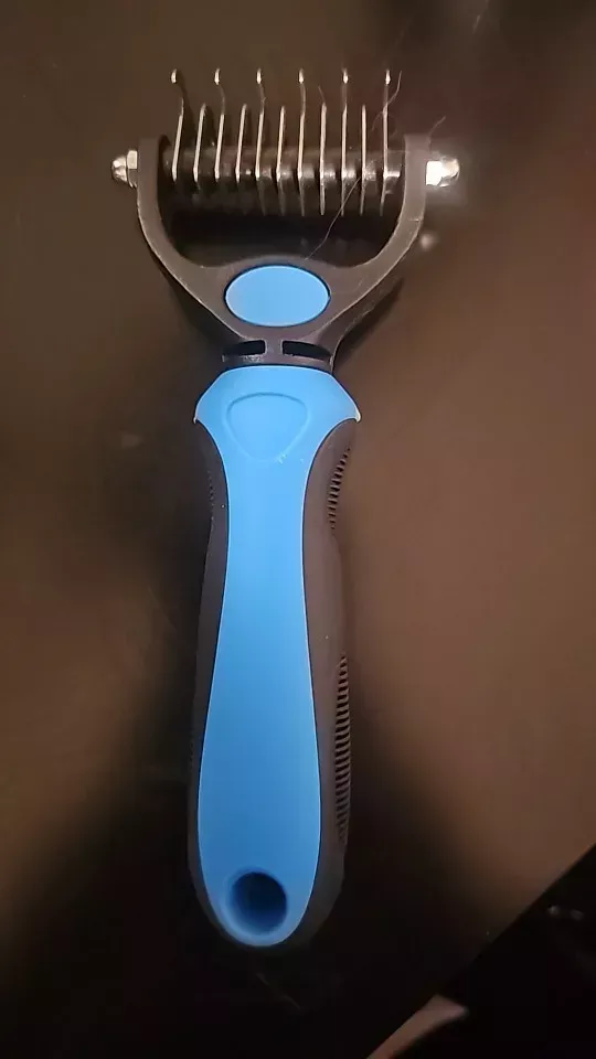 I've finally found the holy grail of pet grooming with this double-sided hair remover! It's a complete lifesaver, tackling the stubborn knots and loose fur on my golden retriever with ease. The stainless steel teeth glide through tangles without any discomfort, leaving behind a beautifully smooth coat. What's more, I've noticed a healthy sheen and less shedding around the house. The ergonomic design makes it comfortable for both of us during grooming sessions. A must-have for any pet owner tired of fur-covered furniture!